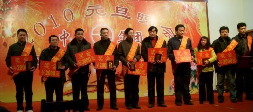 本次年會(huì )共分為三部分。第一部分是2009年總結會(huì ),于上午成功召開(kāi);第二部分是2009年優(yōu)秀員工頒獎大會(huì ),于下午三點(diǎn)隆重舉行,來(lái)自集團及分公司的十二位優(yōu)秀員工受到表彰;第三部分是2010年元旦晚會(huì ),于下午四點(diǎn)開(kāi)始,在一派喜氣洋洋中,應邀嘉賓、集團及各分公司領(lǐng)導、集團及各分公司員工、員工家屬等共計200余人一起度過(guò)了美好而難忘的快樂(lè )時(shí)光。